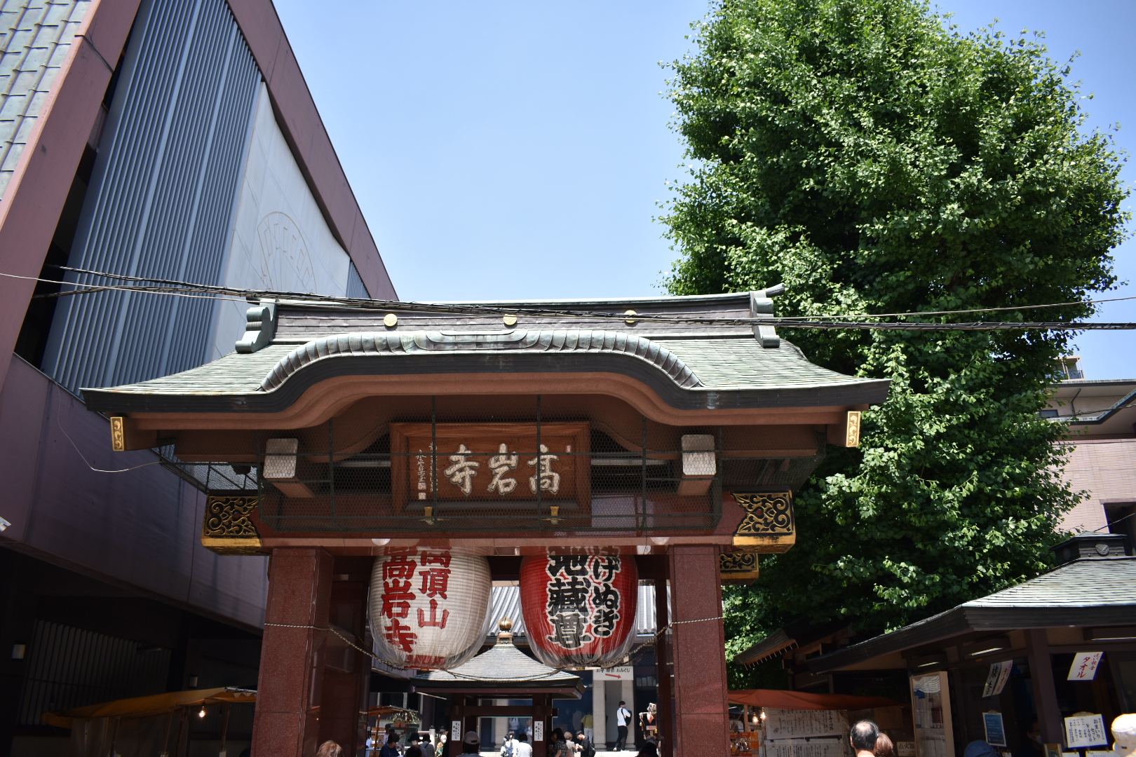 巣鴨商店街の一角にあり、山門をくぐると本堂が目の前にある。その左前には洗い観音がある。
