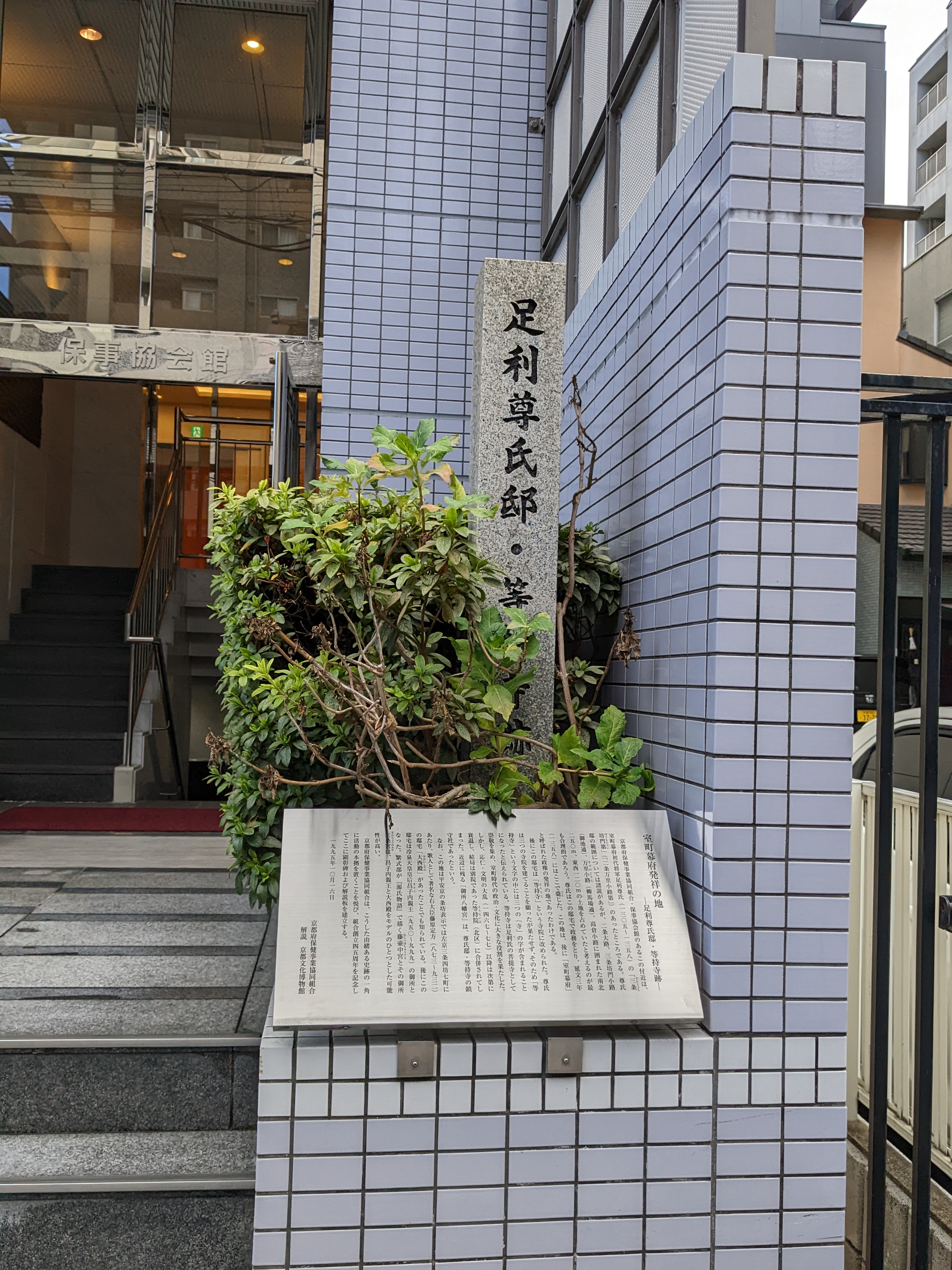 この場所が私が夢まで見た歴史の舞台があったところである。旅行の最後にとっていた場所である。向かいには足利直義の 屋敷のあとがあると聞いていたのでこんな近くに大きな出来事があったというのは驚きです。大学時代、卒論で足利尊氏、 直義、高師直とこの三者が調べれば調べるほど後世の歪みがあり、誤解されているところである。古文書を丹念に調べれば、 分かることだけど尊氏は逆賊という汚名を着せられ、昭和の戦争が終わるまで研究がされなかった。今の世では考えられない 時代があったのです。私がこの時代の研究書を探すと南朝何々、後醍醐天皇何々という本はあるが、北朝、室町幕府というのが 書かれたタイトルはほとんどなかった。研究は自由にできるようになるべきです。