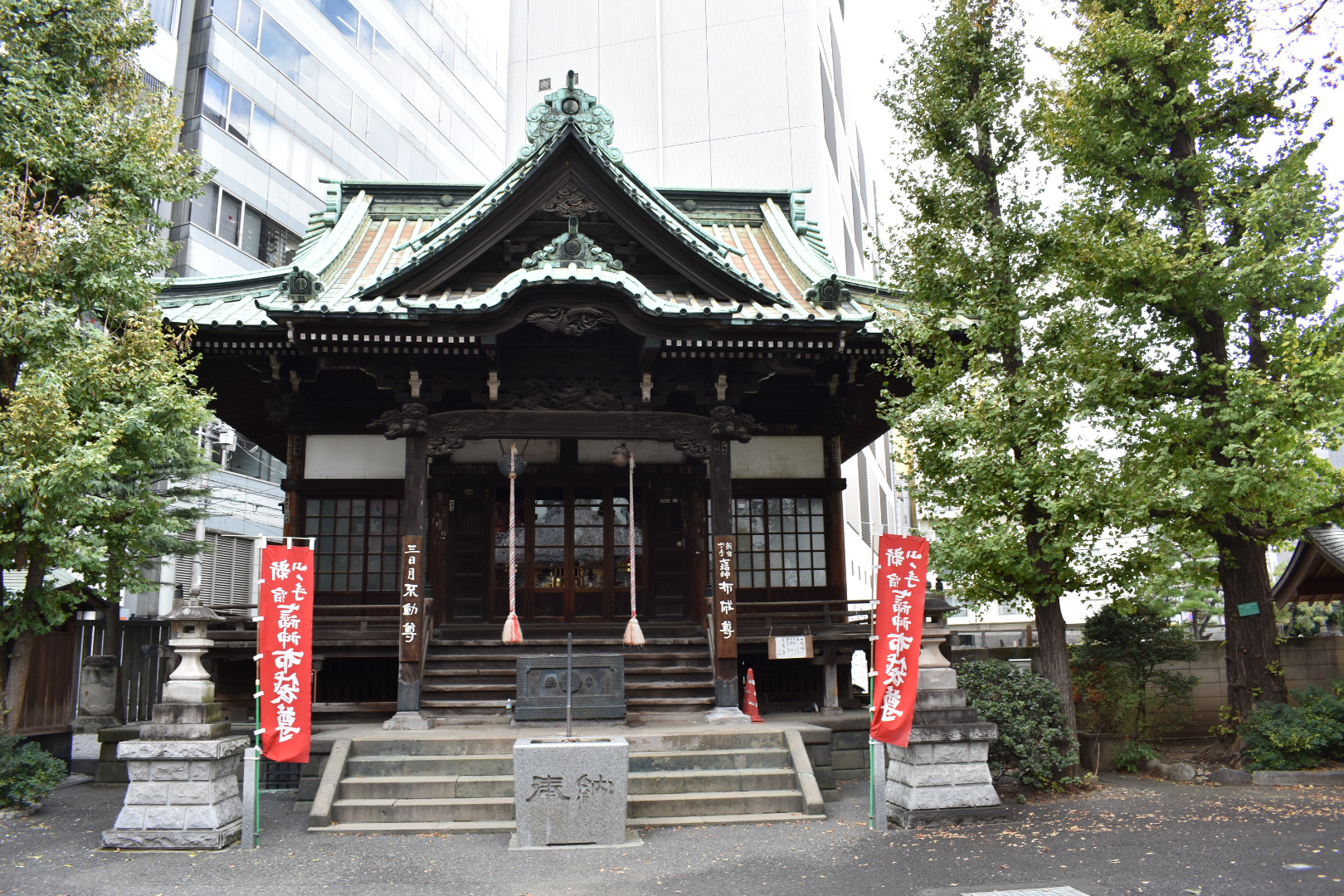 地下鉄の駅から 、2分ぐらいで境内に来れる。入口の正面には近代的な本堂がある。右に江戸六地蔵の一つの地蔵尊がある。 となり奥には閻魔堂、左には布袋尊堂がある。