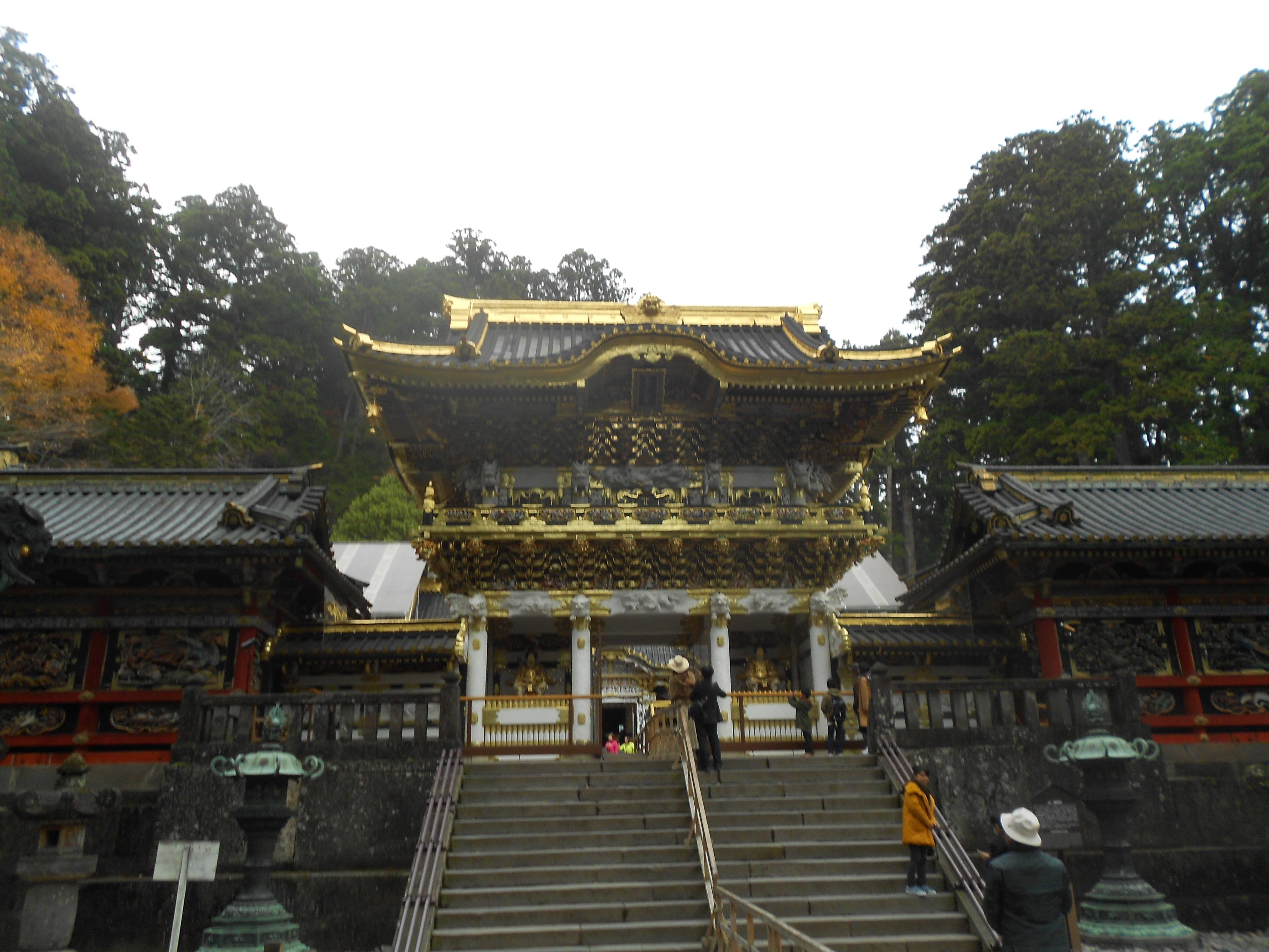 鳥居をくぐると、左側に五重塔が見れる。真っすぐ進むと表門があり、ここで入場券を買い、ここから本格的な境内に入る。 庫裏がたくさん見れる。色があざやかに塗ってある。参道に沿ってゆくと、左側に三猿がの彫刻が見れる。そのまま、進むと 陽明門が見える。この陽明門の彫刻は一つとして同じ彫刻がないというので有名である。目の前には唐門が見え、本堂の中に入ると神社 なんか、寺院なのか、わからなくなる空間である。本堂を出て、眠り猫の方に進むと、家康の墓が見れるというので、入り 自然の中に無機質な参道が長くつづき、その先には奥宮に出てくる。これが家康の墓である。