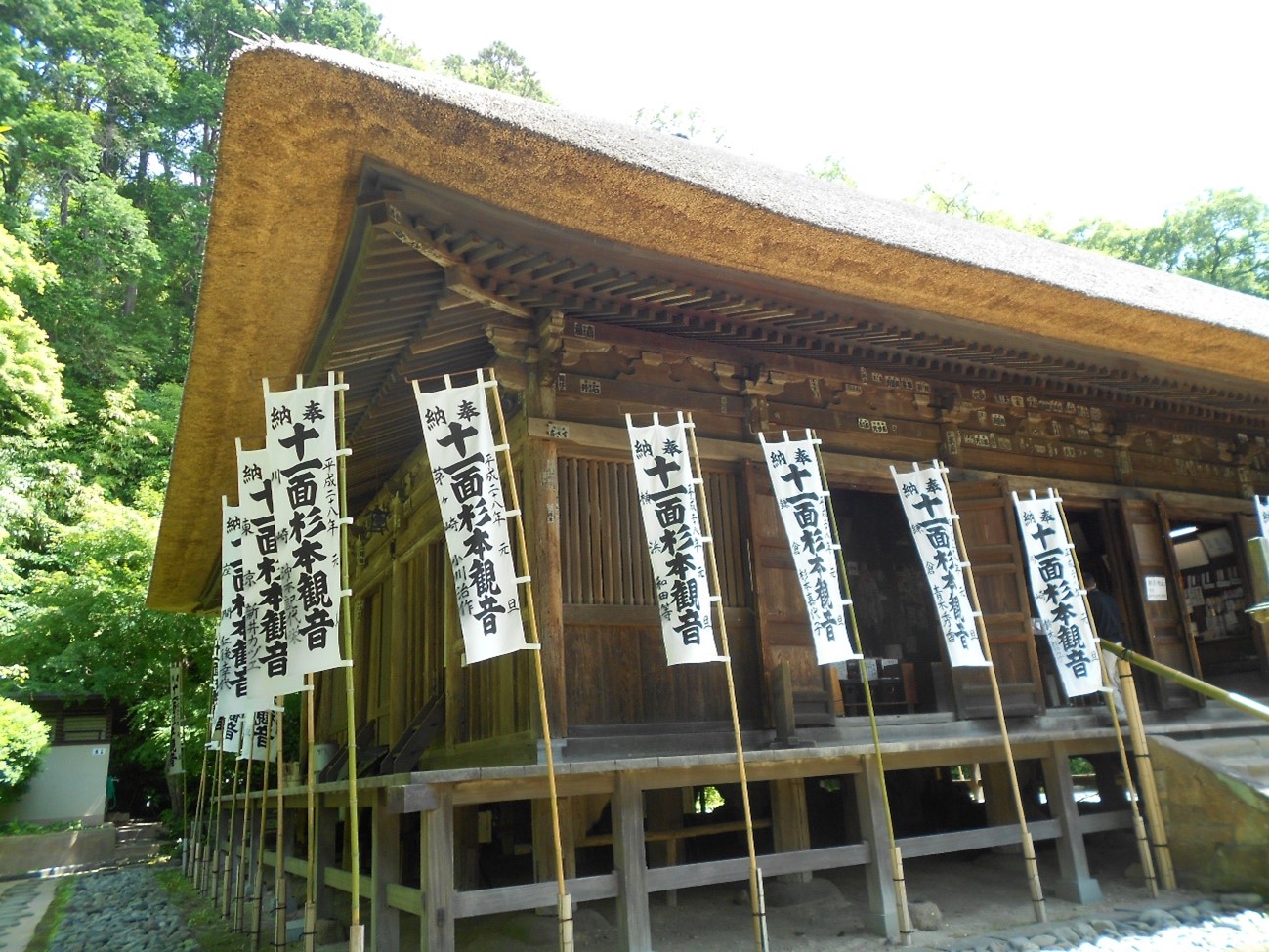 - 本堂内の東方の本尊(国重文)は鎌倉中期の作。 花山天皇 の命で、源信(恵心僧都)が985年(寛和元年)十一面観音をつくり、 熊野権現 の示現でこの観世音と霊場順礼の記文(焼失)をおさめたと伝えられている。