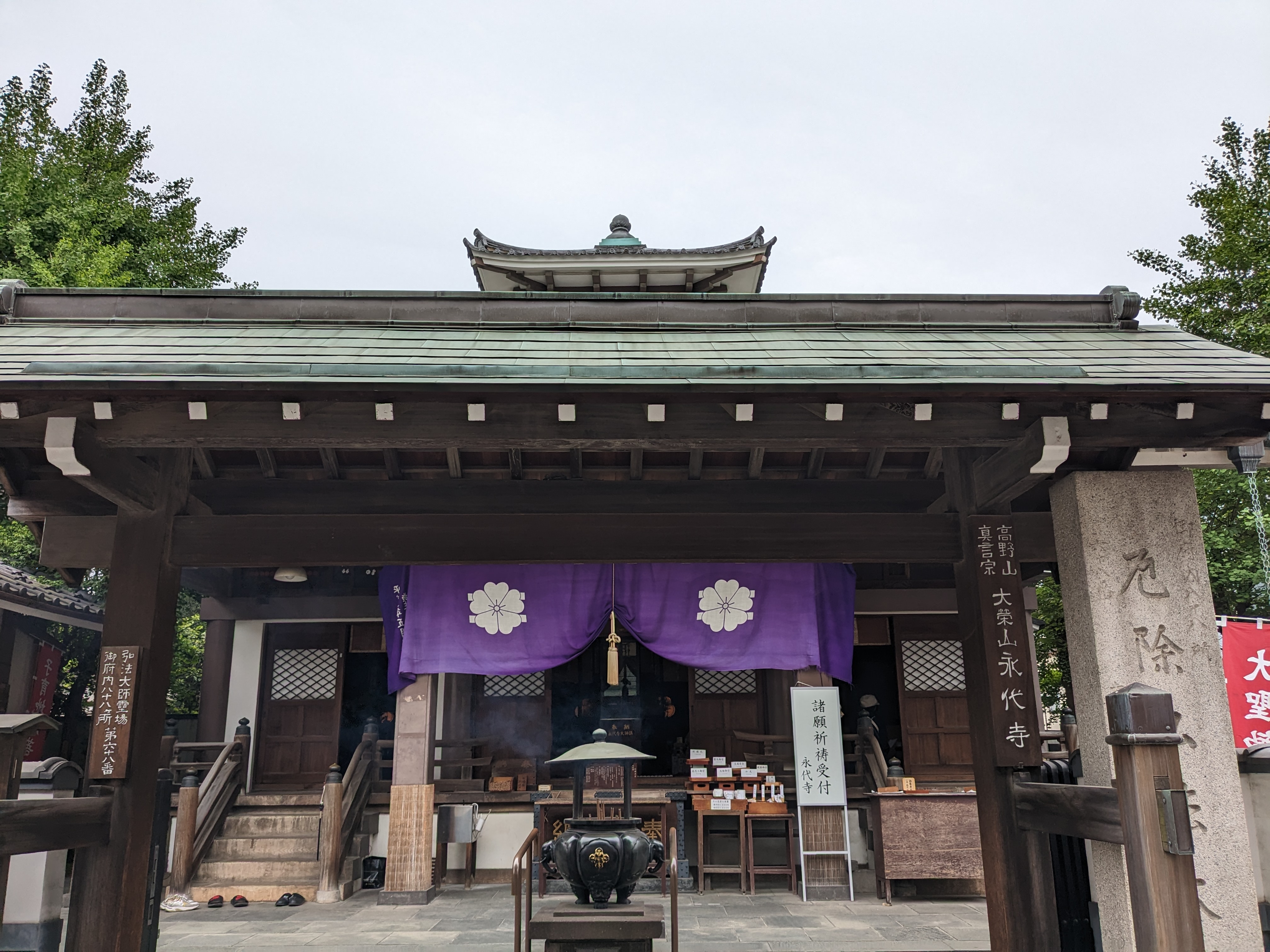 永代寺の歴史を知ると近くにある深川不動堂の隆盛と永代寺のわびしさには悲しさを感じる。また、門前仲町駅の近く の甘味処であんみつを食べたら美味しかった。