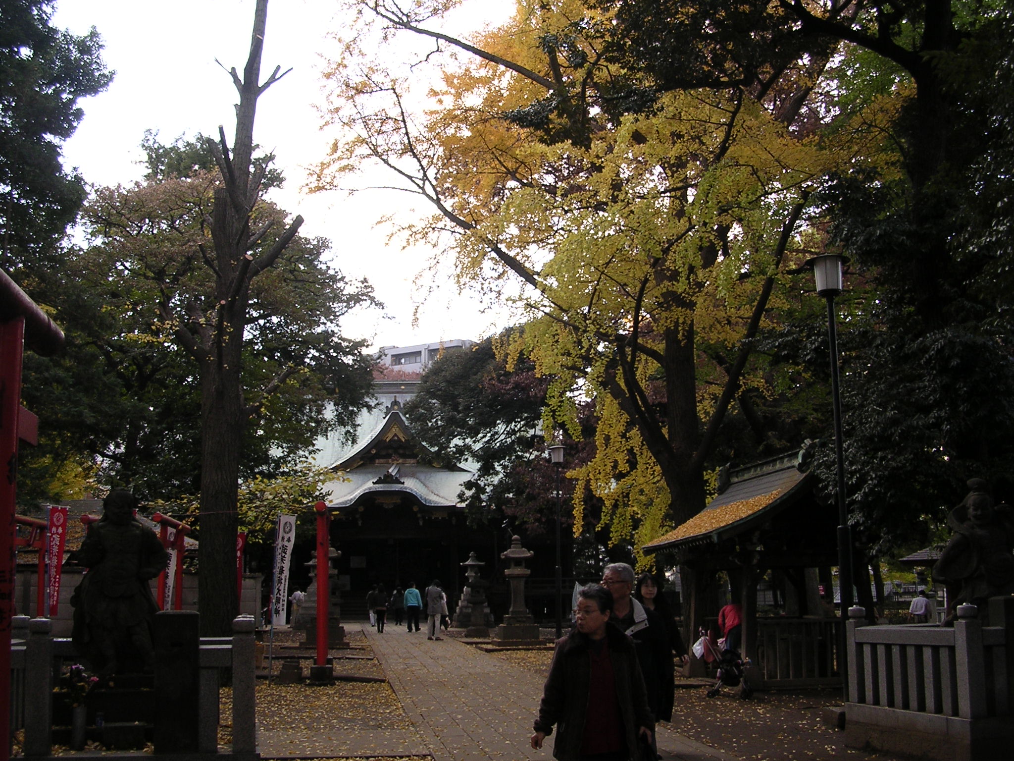 都電の鬼子母神前駅を降りて、参道を通って境内の入口に立つと大きな銀杏の木があり、その奥に本堂がある。